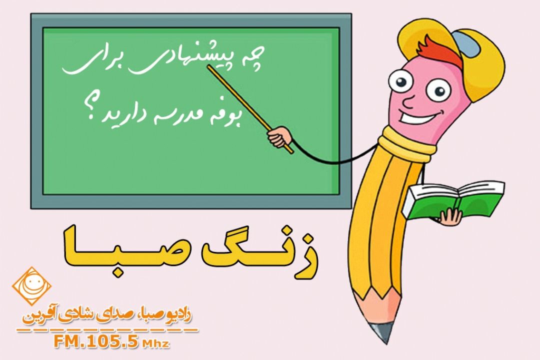 در برنامه "زنگ صبا" موضوعات گوناگون و متنوع بصورت انشاء و در قالب طنز عنوان می شود.